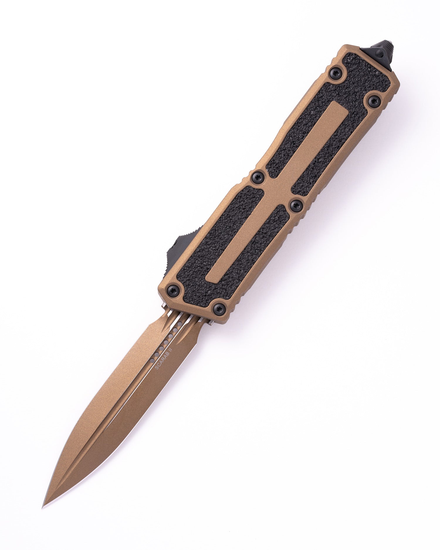 The Scarab II® Gen III is currently the largest double-action out-the-front knife in our present offering. Weighing in at 5.92 oz with an overall length of 9.7”, the Scarab II® also has the widest blade in our lineup. The Scarab® II revolutionizes the tactical landscape